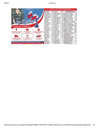The document is a 3-page article from the September 9, 2016 edition of El Mercurio, a Chilean newspaper. It discusses recent economic data showing a decline in Chile's GDP growth and discusses the government's plans to stimulate the economy through investment in infrastructure projects. Concerns are raised that global economic uncertainties could continue to negatively impact Chile's economic outlook.