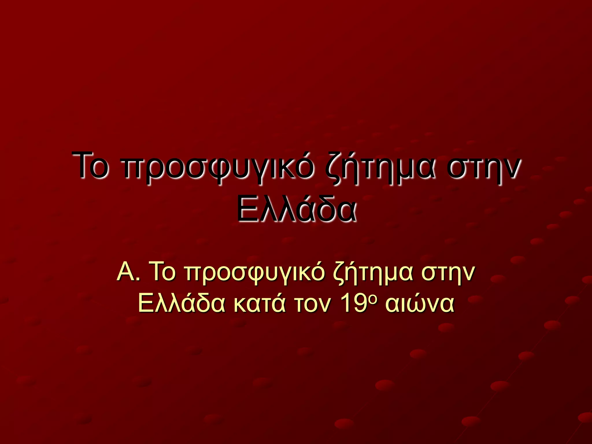 ΠΡΟΣΦΥΓΕΣ ΣΤΗΝ ΕΛΛΑΔΑ ΚΑΤΑ ΤΟ 19ο ΑΙΩΝΑ ΕΙΣΑΓΩΓΗ