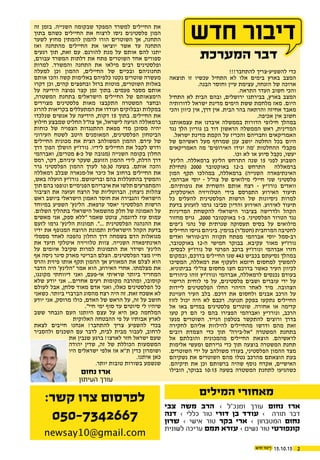 19 גיליון תשע”ו בחשוון 'ב 15.10.15 ֹחנ השבוע פרשת חדרה ׀ שבת זמני 17:36 נרות הדלקת 18:42 שבת צאת אור ,בחדרה מופץ והסביבה עקיבא 111828 חדש רחוב בחדרה חדשה חזית חדרה לעיר מטבחון ריבת הפעםו סגולות עם אתרוגים 16 6 'עמ 'עמ מגבירים את הביטחון בחדרה מעמד הקהל בחדרה ברגע ניקיון בס“ד הכנסת לבתי ניקיון שירותי אחד במקום 050-2354777 :לפרטיםלגבאי מבצע כנסת בית חדשה כיבוי תחנת בחדרה 8 שטח ישראל למדינת הקצתה חדרה עיריית תושבי את תשרת אשר כיבוי תחנת להקמת ויעיל מהיר מענה ותיתן העיר במערב השכונות חירום במצבי 'עמ לבניית הסכם נחתם המצב לאור