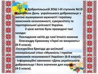 зош №19 день добровольця 1. 2. У Добропільській ЗОШ І-ІІІ ступенів №19