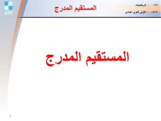 تتناول الوثيقة موضوع المدرج المستقيم في مادة الرياضيات، مع التركيز على حساب النقاط والمسافات بين النقاط. كما تتناول أحداث تاريخية تتعلق بحياة الرسول محمد (ص) مثل الهجرة والزواج والوفاة. الوثيقة تشمل أيضًا أسئلة رياضية تتعلق بحساب السنوات بين تلك الأحداث.