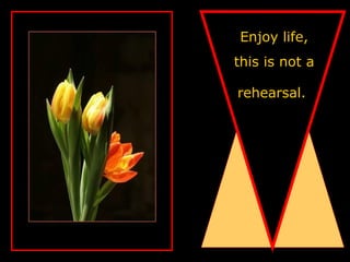 The document contains a collection of inspirational quotes about living life to the fullest and making the most of each day. Some of the quotes encourage embracing life's ups and downs, rising after falling, and finding happiness in appreciating what you have. Other quotes suggest healing from the past, following your dreams, being open to opportunities, and moving forward even when facing obstacles. The overall message is about maintaining a positive outlook and making the most of your time.