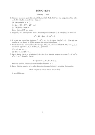1. Prove properties about a convex quadrilateral where midpoints of sides satisfy certain conditions.