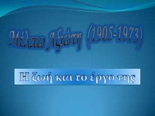 Η Μέλπω Αξιώτηγεννήθηκε στην Αθήνα, κόρη του Μυκονιάτη μουσικοσυνθέτη και τεχνοκριτικού Γεωργίου Αξιώτη και της αριστοκράτισσας Καλλιόπης Βάβαρη. Οι γονείς της χώρισαν το 1908 και η Μέλπω μεγάλωσε στη Μύκονο με τον πατέρα της, ο οποίος τον επόμενο χρόνο παντρεύτηκε την Μαρουλίνα Γρυπάρη. Στη Μύκονο η Μέλπω μεγάλωσε χωρίς μητέρα στο αυστηρό περιβάλλον της οικογένειας Αξιώτη και τέλειωσε το Σχολαρχείο. Από το 1918 ως το 1922 μπήκε εσωτερική στη Σχολή Ουρσουλίνων της Τήνου.