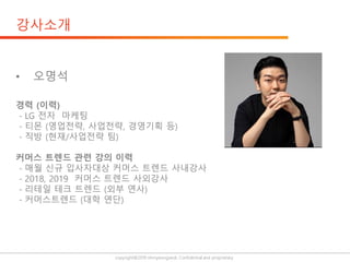 The document emphasizes the confidentiality and proprietary nature of the materials provided by instructor Oh Myung-seok, intended solely for participants from GSK. It warns against unauthorized distribution, publication, or marketing of the content, highlighting potential legal repercussions. Additionally, it discusses the focus on automotive distribution and real estate, as well as trends in distribution and marketing within these sectors.