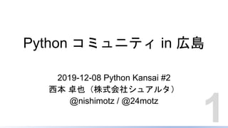 Python コミュニティ in 広島 2019-12-08 Python Kansai #2 西本 卓也(株式会社シュアルタ) @nishimotz / @24motz