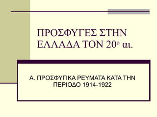 Το προσφυγικό ρεύμαστην Ελλάδα Οι Έλληνες εγκατέλειψαν τη Μ. Ασία κατά χιλιάδες. Στα σπίτια που εγκατέλειπαν οι τουρκικές αρχές εγκαθιστούσαν Μουσουλμάνους μετανάστες. Οι διώξεις και οι εκτοπίσεις συνεχίστηκαν ως το 1918 (τέλος ΑΠΠ) και σε περιοχές όπως ο Μαρμαράς, ο Πόντος κ.α