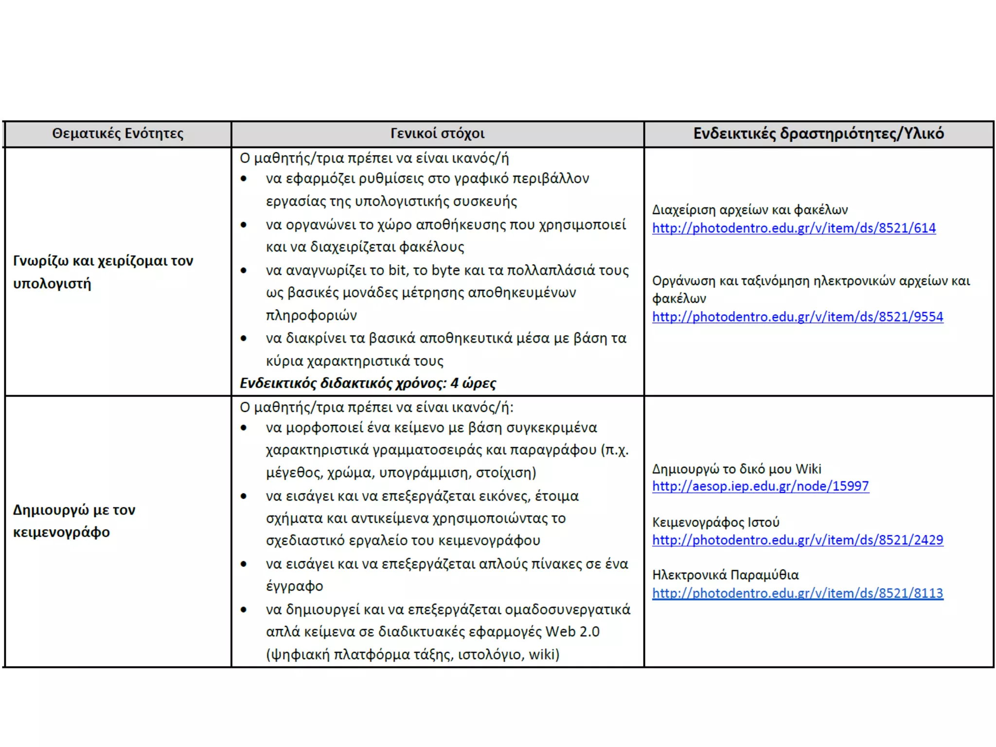 ύλης του γνωστικού αντικειμένου της Πληροφορικής.