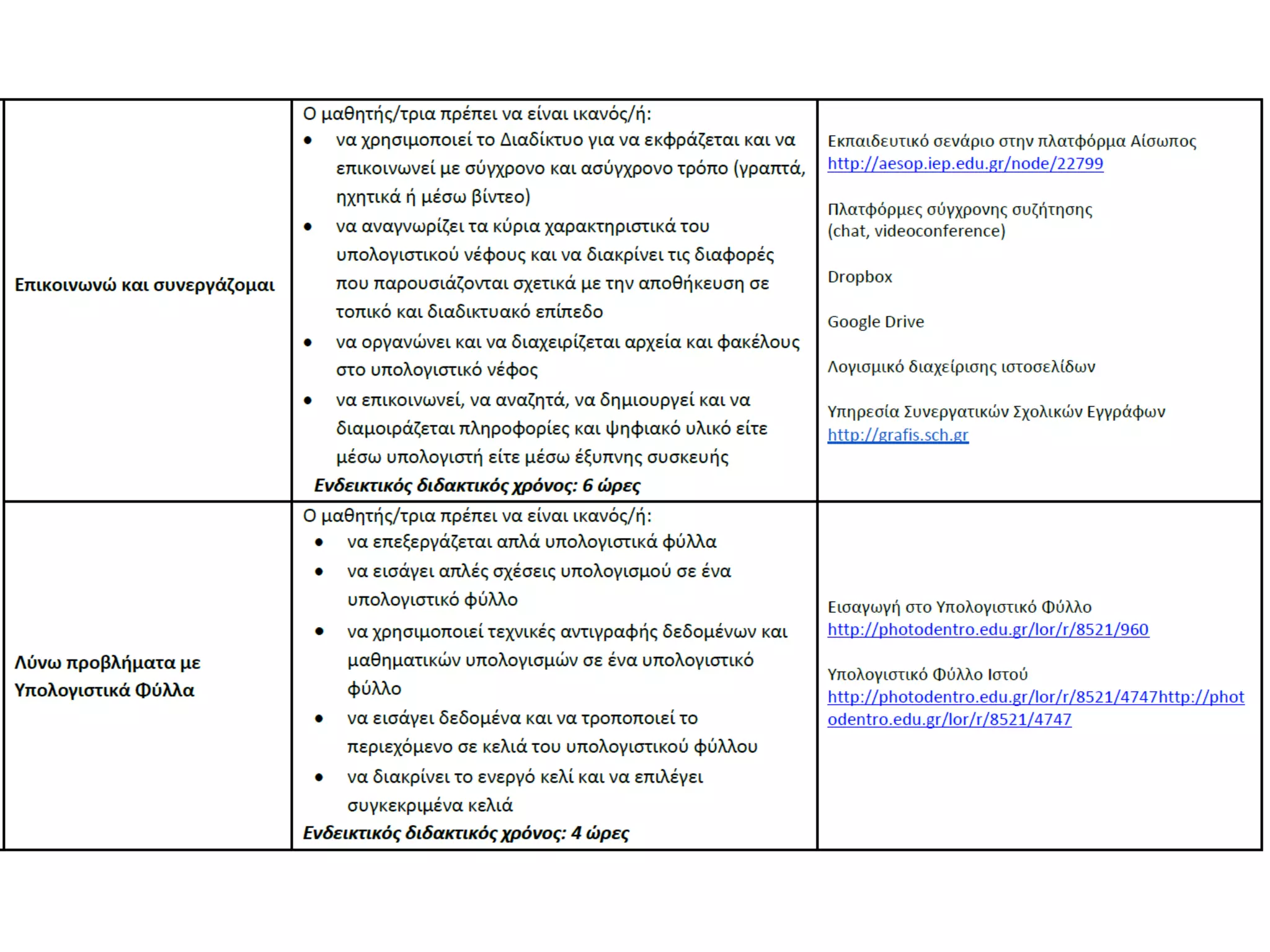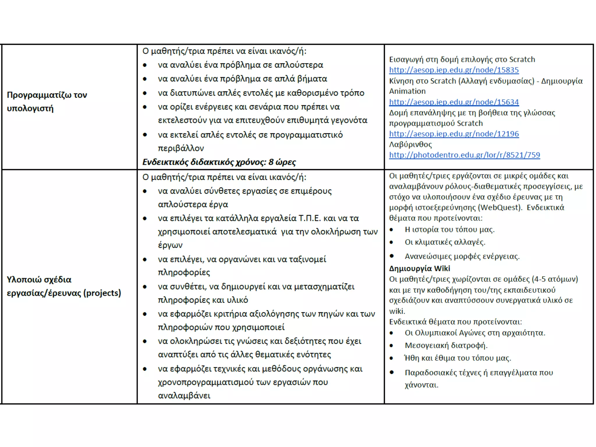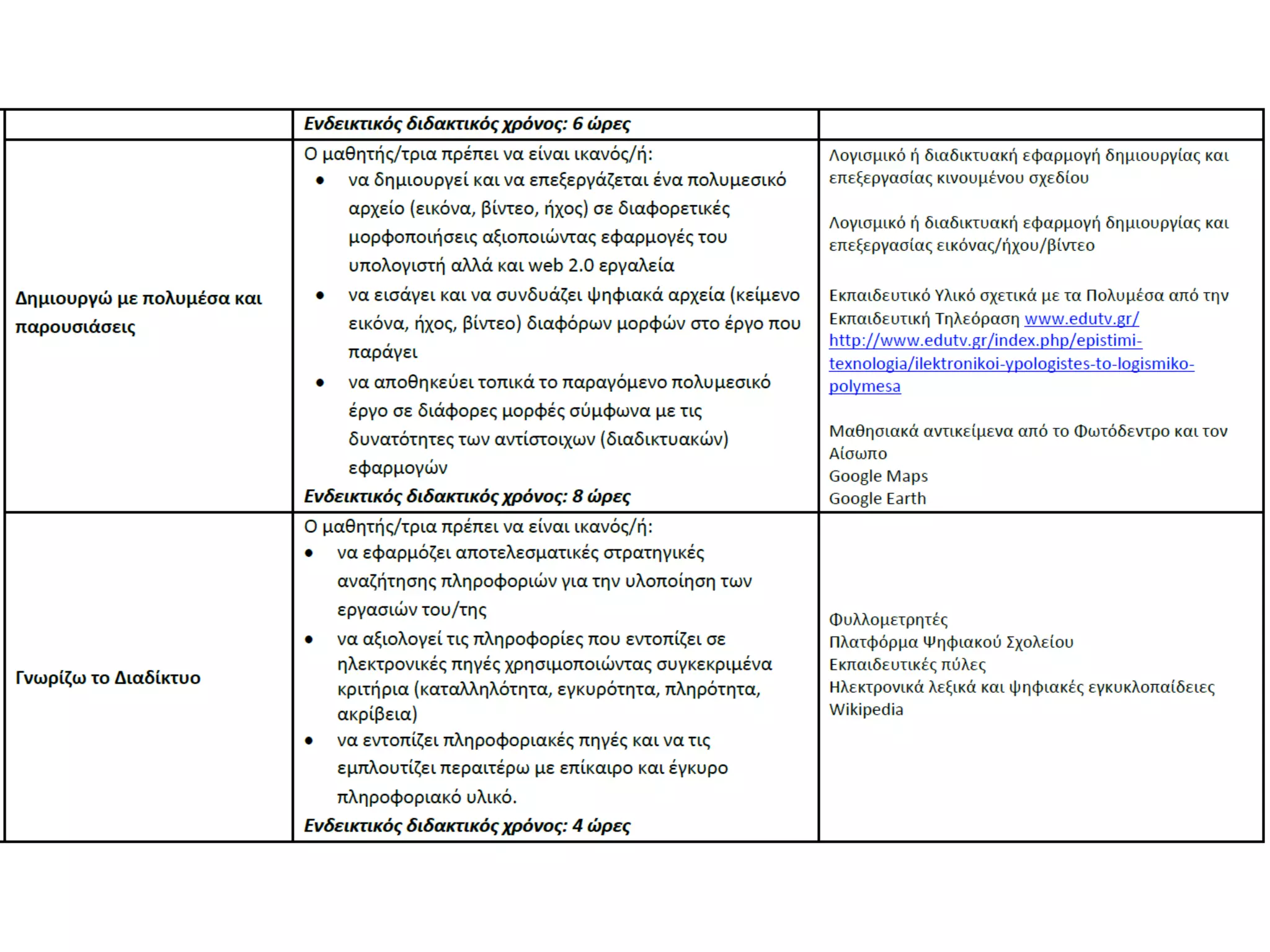 Πληροφορικής από το Δημοτικό έως το Λύκειο.