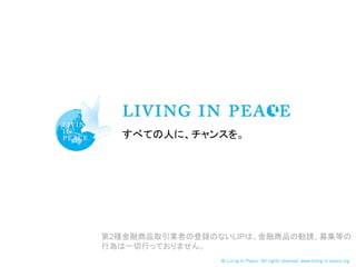 すべての人に、チャンスを。 第2種金融商品取引業者の登録のないLIPは、金融商品の勧誘、募集等の 行為は一切行っておりません。