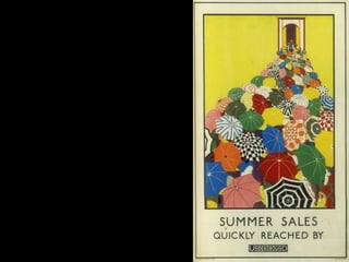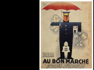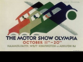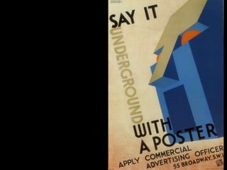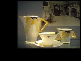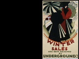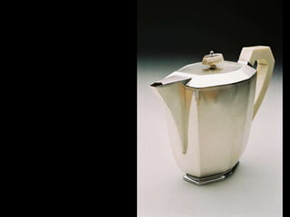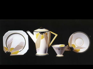 The document discusses the characteristics and basic elements of Art Deco, an artistic and design style that was popular in Western Europe and the United States in the 1920s-1930s. Key features included simple geometric shapes, an emphasis on decorative elements, and celebrating modern lifestyles, with a focus on symmetry, flatness, geometry, and streamlined curves. Several graphic design organizations were also founded in the US during the 1920s.