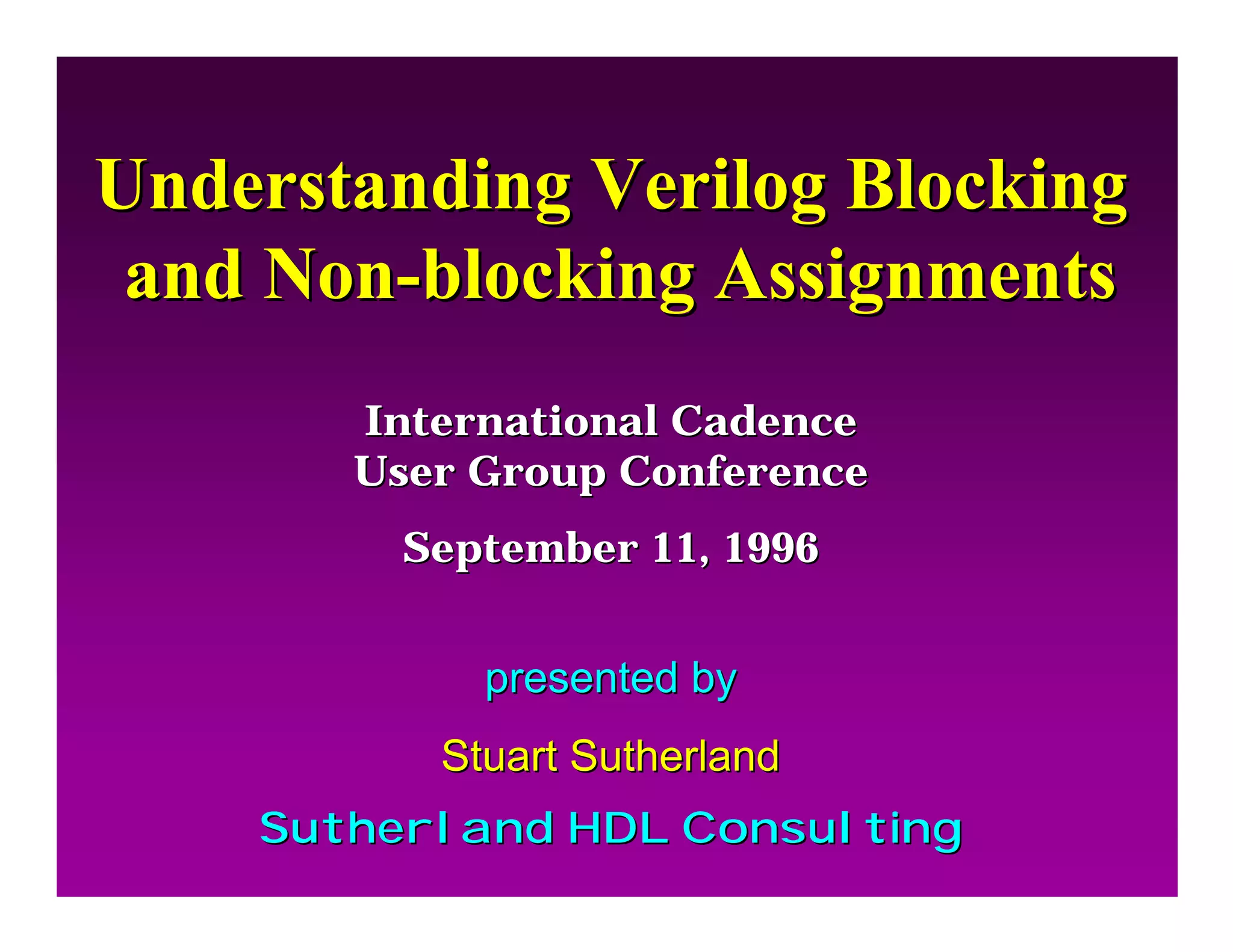 This document summarizes a presentation on understanding blocking and non-blocking assignments in Verilog. The key points are: