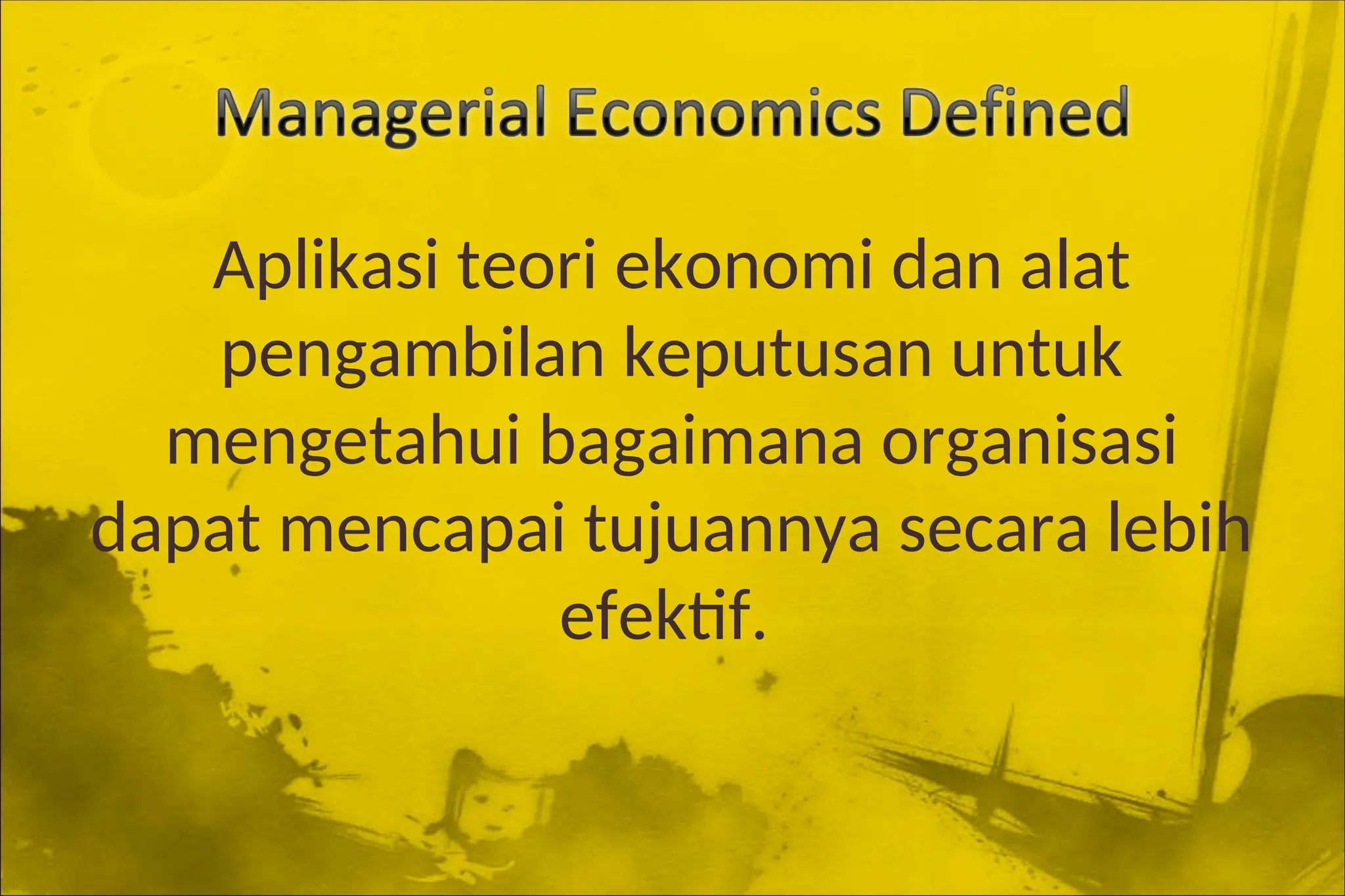 Dokumen ini membahas aplikasi teori ekonomi dan alat pengambilan keputusan dalam manajemen untuk mencapai tujuan organisasi secara lebih efektif. Ini mencakup konsep-konsep seperti maksimisasi keuntungan, perilaku konsumen, dan proses pengambilan keputusan. Manajerial ekonomi berperan penting dalam memecahkan masalah keputusan manajerial melalui analisis dan optimasi.