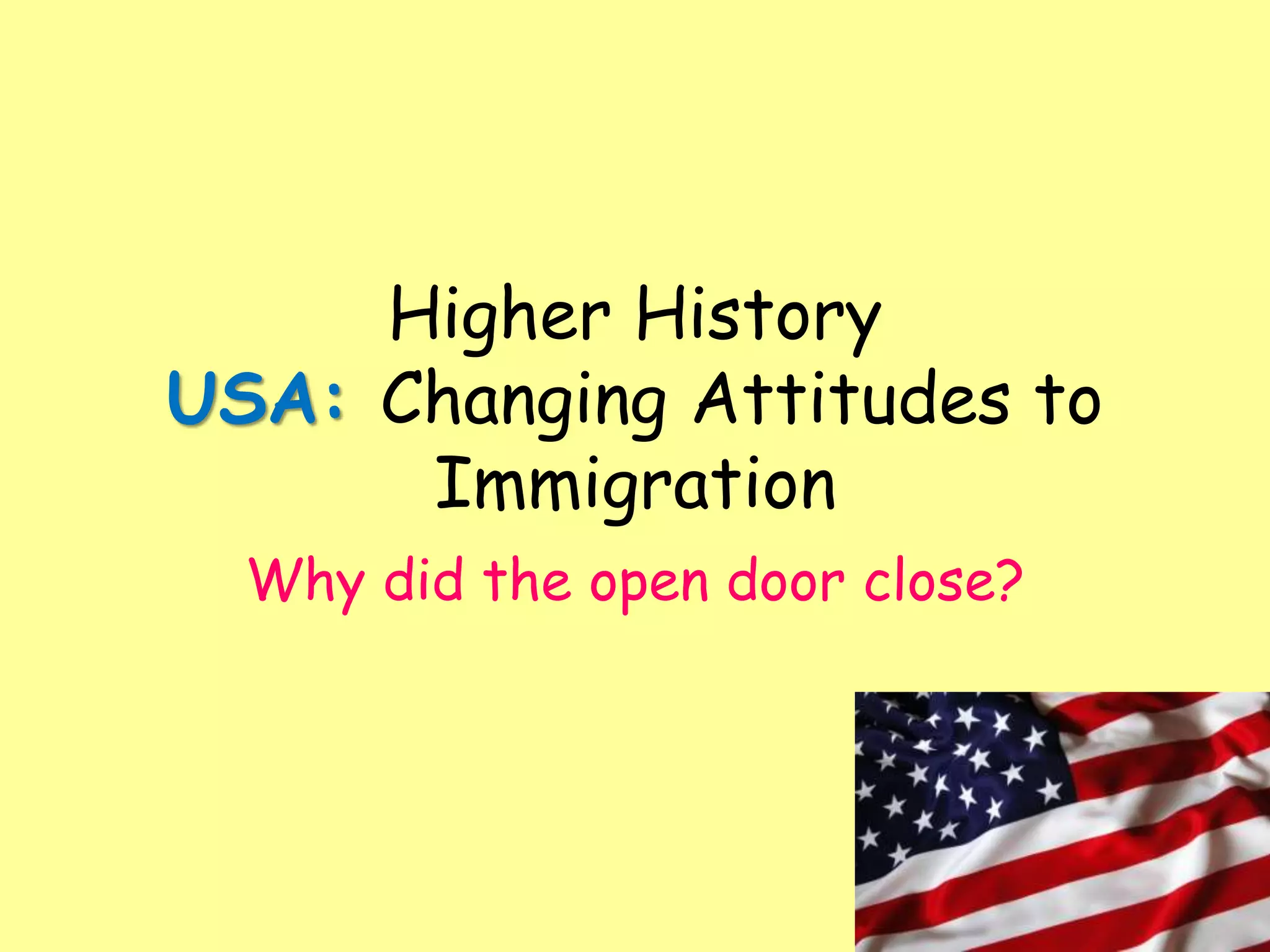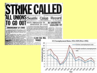 The document provides background information on immigration to the United States in the 19th and early 20th centuries, when millions of Europeans immigrated seeking opportunity. It then discusses five factors that led Americans to change their attitudes towards immigrants in the 1920s: isolationism, fear of revolution, prejudice and racism, economic and social fears, and the effects of World War I. Each factor is explained with examples of how it contributed to more negative views of immigrants. The document aims to help students understand and analyze the reasons for shifting immigration policies in that era.