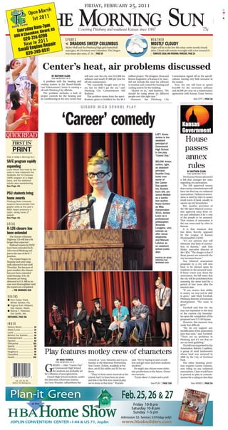 The document is a newspaper from Pittsburg, Kansas dated February 25, 2011. It discusses several local news stories: