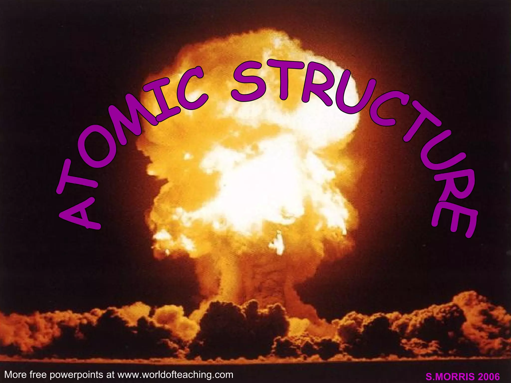 The document discusses the history of the atomic model from ancient Greek philosophers to modern theory. Democritus first proposed the idea of atoms in 460 BC. In the early 1900s, experiments by Thomson, Rutherford, and Bohr led to developments in the atomic model. Rutherford discovered the nucleus at the center of the atom in 1910. Bohr then proposed his atomic model in 1913 where electrons orbit the nucleus in defined shells. Later models like Schrodinger's probability cloud refined and improved upon understanding of atomic structure. The modern view is that the atom is mostly empty space with a dense nucleus at the center and electron cloud region.