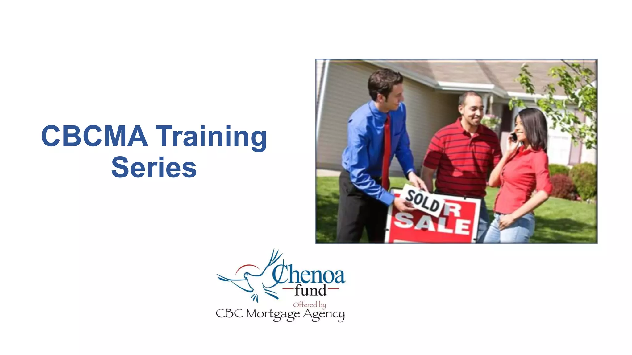 This document provides an overview and summary of a training on Chenoa Fund programs offered by CBC Mortgage Agency. The training covers all aspects of originating and processing loans through the Chenoa Fund programs, including: an overview of conventional and FHA programs; how to calculate AMI; how to complete the 1003; underwriting; locking loans; securing down payment assistance; document drawing; purchase clearing; final documents; servicing; and why to use Chenoa Fund programs. It also includes a matrix comparing the conventional standard 97% LTV and HomeReady products and program guidelines.