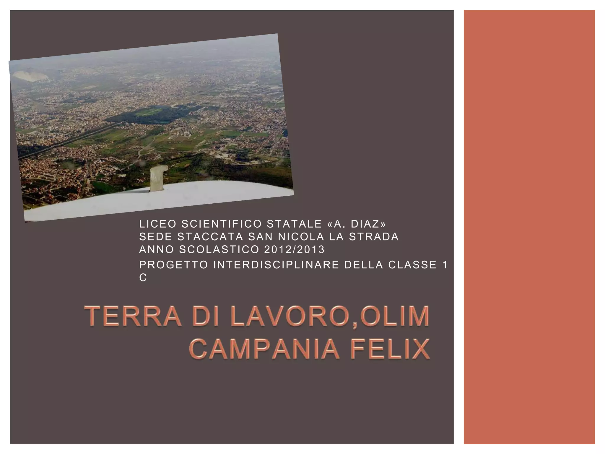 Il documento analizza la storia e la cultura della regione Campania, con particolare attenzione alla 'Terra di Lavoro', sottolineando l'importanza del suo patrimonio storico e naturale, il significato del suo stemma, e il ruolo del WWF nella protezione della biodiversità. Si evidenziano anche gli sviluppi economici della regione, in particolare durante il 'boom economico', e i problemi attuali legati alla crisi industriale e alla camorra. Infine, il documento tocca il tema della green economy come possibile soluzione per il futuro della regione.