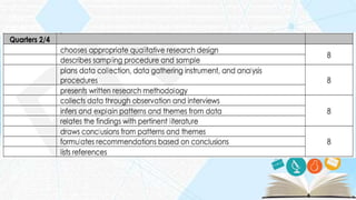 The document outlines various qualitative data collection methods including interviews, questionnaires, observations, and document collection, emphasizing their role in understanding human behavior and perceptions. It also discusses characteristics of effective data collection instruments and provides insights into the analysis of qualitative data. Additionally, it addresses ethical considerations in research methodology, emphasizing participant consent and confidentiality.