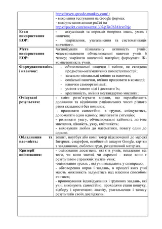 •класу; закріпити вивчений матеріал; формувати ІК-