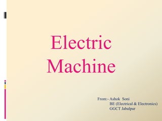 1. Electrical machines are classified as static machines like transformers or rotating machines like motors and generators.