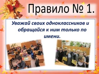 Документ содержит свод правил для первоклассников, посвященных уважению, внимательности и веселью в обучении. Правила подчеркивают важность поддержки и дружбы среди одноклассников, а также дисциплины во время уроков и перемен. В конце упоминается праздник, посвященный первоклассникам, с участием учеников 4 класса.