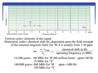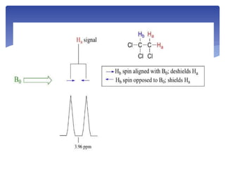 2. Key concepts in 1H NMR include chemical shifts, which result from electron shielding and deshielding of hydrogen nuclei, and spin-spin coupling between neighboring hydrogen atoms.