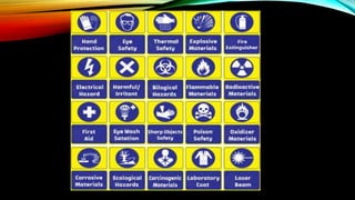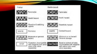 The document outlines essential laboratory safety measures, including familiarity with hazards, safe handling protocols, and emergency procedures. It emphasizes the importance of proper labeling, housekeeping, and the significance of the OSHA laboratory safety standard for chemical management. The document also details the dangers of corrosive chemicals and the precautions necessary to mitigate risks associated with strong acids, alkalis, dehydrating agents, and halogens.
