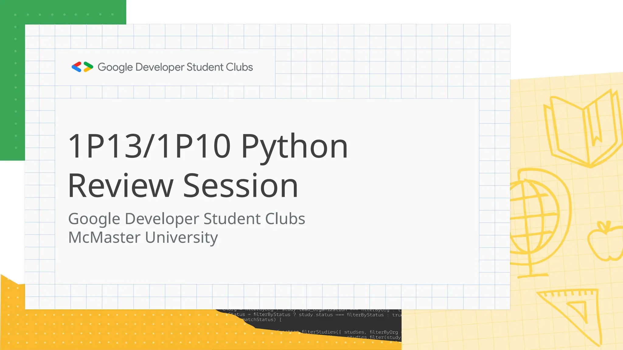 The document outlines the agenda for a Python review session hosted by the Google Developer Student Clubs at McMaster University, covering essential topics such as data types, functions, loops, object-oriented programming, and exception handling. It also includes explanations of built-in functions, common list and string methods, recursion, and OOP principles like encapsulation and inheritance. Furthermore, it emphasizes the importance of exception handling to ensure stable program execution and includes a link for additional resources.