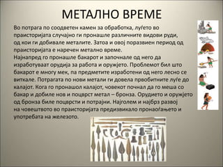 праисторијата е наречен метално време.