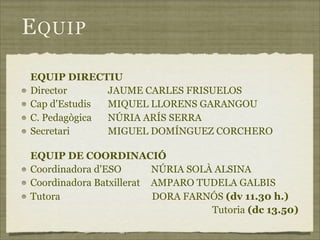 La llengua vehicularés el català (matèries, tutoria, etc.)