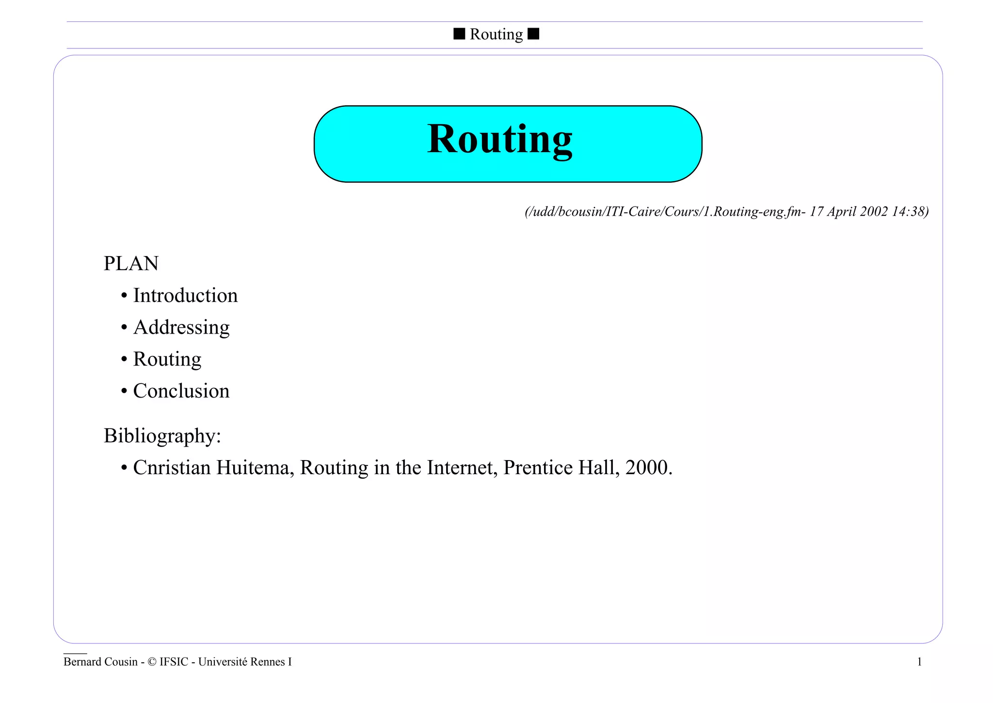 This document provides an overview of routing concepts including addressing, routing functions, packet forwarding, virtual channels, and routing types. It discusses addressing structures and characteristics, how routers use addresses and routing tables to forward packets to destinations, and how routing tables are updated dynamically or statically. Virtual channels are also introduced as an alternative to datagram forwarding where connections are established and packets follow dedicated paths. The summary concludes with a high-level comparison of centralized and distributed routing algorithms.