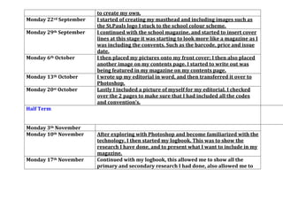 Rhiya Heir completed a foundation portfolio in media studies where she created a magazine focused on R&B music over the course of several months. She began by researching existing magazines as inspiration and learning Photoshop. Over time, she developed her masthead, cover pages, contents page, and double page spread, adding images, cover lines, and institution logos. She also created a logbook to document her research and design process and gathered feedback from peers on her magazine pages. In the end, she reflected on how her work improved from her original to final designs.