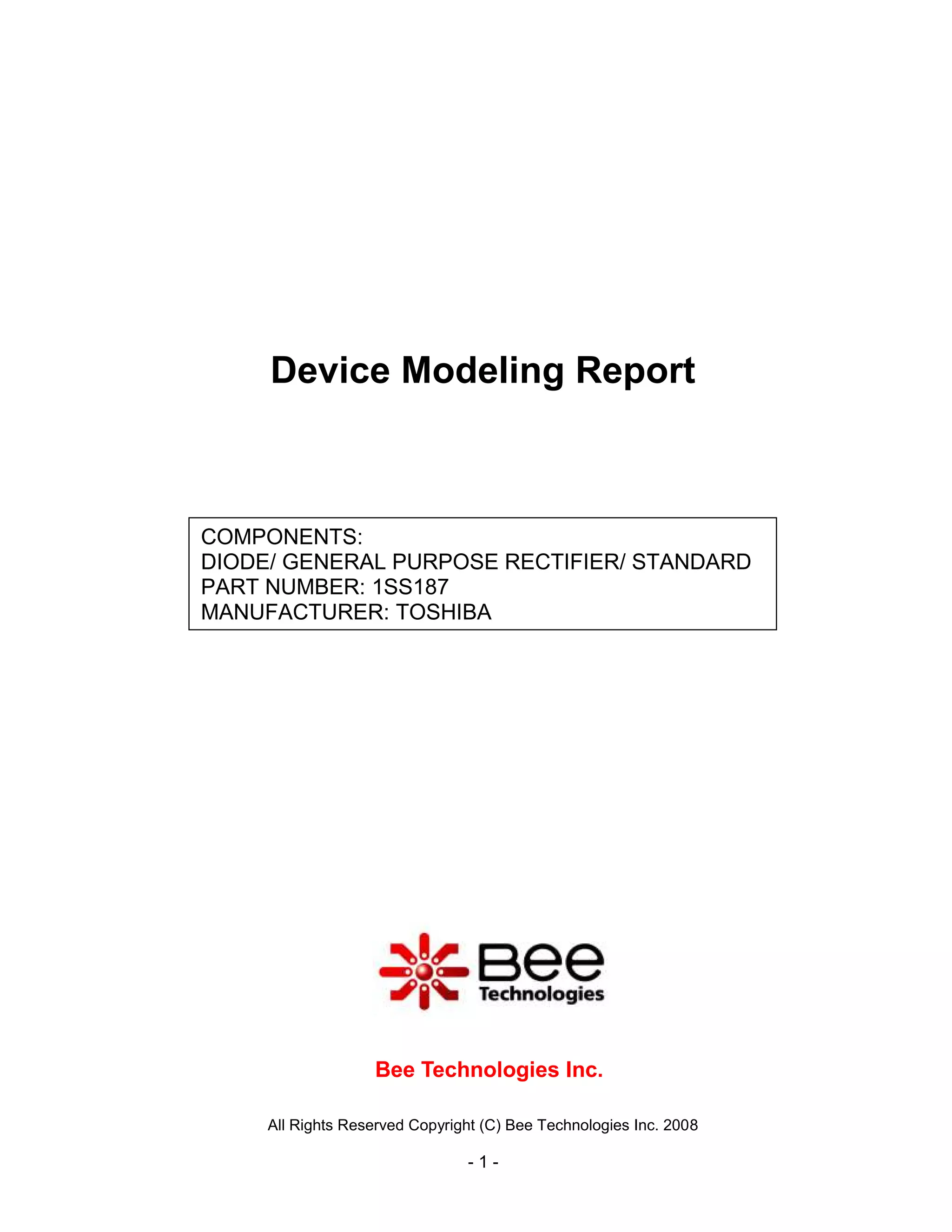 This document provides a SPICE model for the 1SS187 general purpose rectifier diode manufactured by Toshiba. It includes: