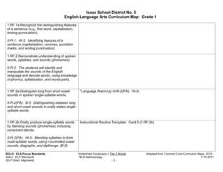 1) This document outlines the curriculum map for grade 1 English Language Arts at Isaac School District No. 5.
