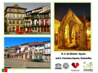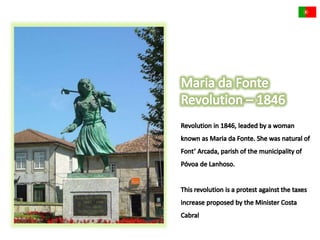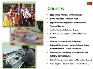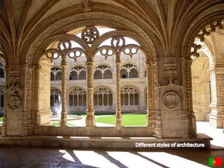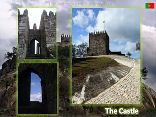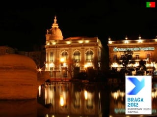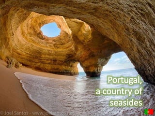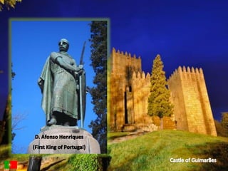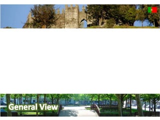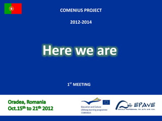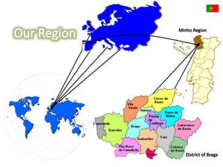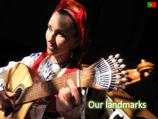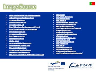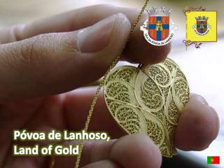This document provides information about a Comenius project meeting in Lisbon, Portugal. It lists Portugal's capital as Lisbon, its official language as Portuguese along with the recognized regional language of Mirandese. It also provides statistics on Portugal's population and ethnic groups. The document then shares pictures from sites around Lisbon including the Park of the Nations and vineyards in Douro Valley. It recognizes top Portuguese golf resorts and shows images of a Barcelos rooster and gold pieces from Póvoa de Lanhoso. The student participants and their mentors are also listed.