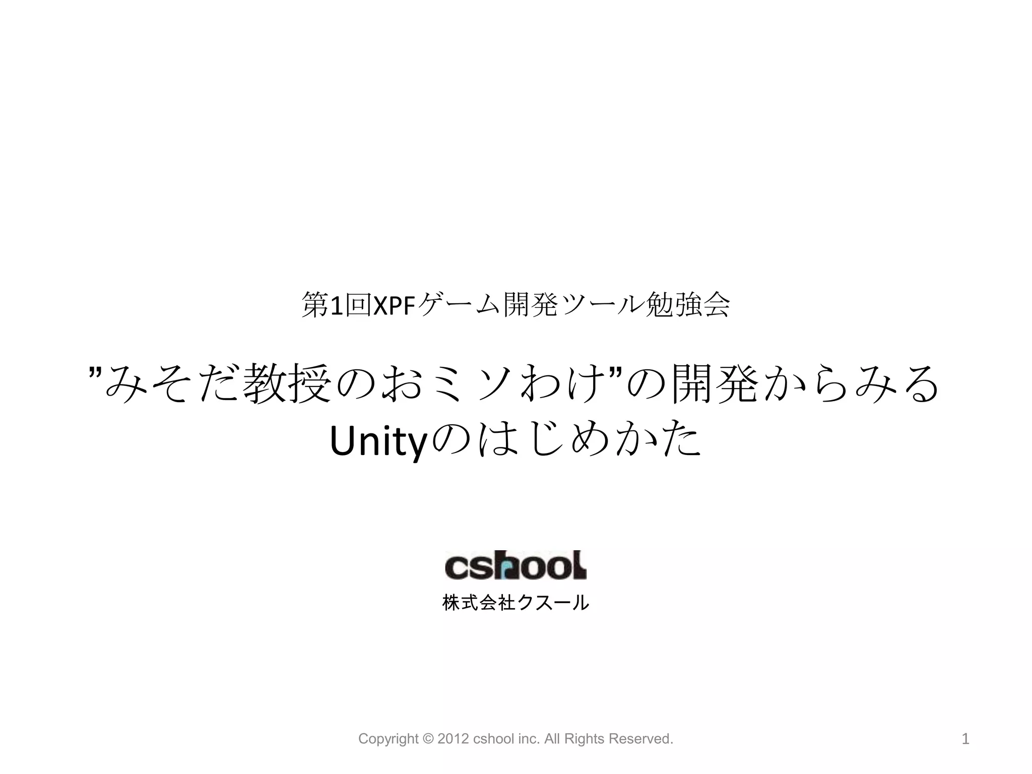 第1回XPF(クロスプラットフォーム)ゲーム開発ツール勉強会〜いま話題のゲーム開発ツール: Unity, Corona, Phonegap等大集合〜 「みそだ教授のおミソわけ」の開発からみる、Unityのはじめかた