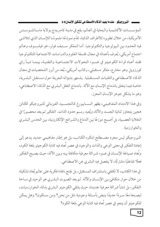 الصبا ةقظ الذكاء ي االصطبا ............................ 113 سيبارةو ( 4 ) االنقكاض :م البا تكاجع اإلنسان ................................ .... 113 سيبارةو ( 5 ) الباا : الكقمي ة وال حاارة جمةمة ................................ 114 سيبارةو ( 6 ) الذكاء التشاركي الكوأ ................................ ............. 114 سيبارةو ( 7 :) الذكاء الييو ممجيالم ................................ ............. 116 سيبارةو ( 8 :) ي الو ي االصطبا المتعم ................................ ......... 117 سيبارةو ( 9 ) اليوكم مي الخوار التشاركي ................................ ...... 119 سيبارةو ( 10 ) الباا ي اإلبما الكقمي ................................ ........... 120 سيبارةو ( 11 ) الذكاء الوقاةي العالمي ................................ ............ 122 سيبارةو ( 12 ) الذكاء التاملي :الماملي ر ل المستق اقي االست .................. 123 : ماتم ل مستق عايم :بكمجته سيبارةوها الذكاء ي االصطبا يف الم مدمتيو ..... 124 تقمةم ................................ ................................ ........... 127 الثقاف :ة المعز تيوال الاوة والكمز يف صك البيكوجيكو ...................... 127 الفبون يف صك :البيكوجيكو هل تظل إنساني يف من الذكاء ي؟ االصطبا .......... 130 الذكاء ي االصطبا :كفبان هل ،نث بذوقه؟ وهل نعترب ا؟ م م ..................... 131 : ماتم اإلنسان بين الذاككة والخيام ................................ .............. 132
