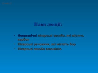 ЛІКАРСЬКІ ЗАСОБИ НЕОРГАНІЧНОЇЛІКАРСЬКІЗАСОБИ НЕОРГАНІЧНОЇ
