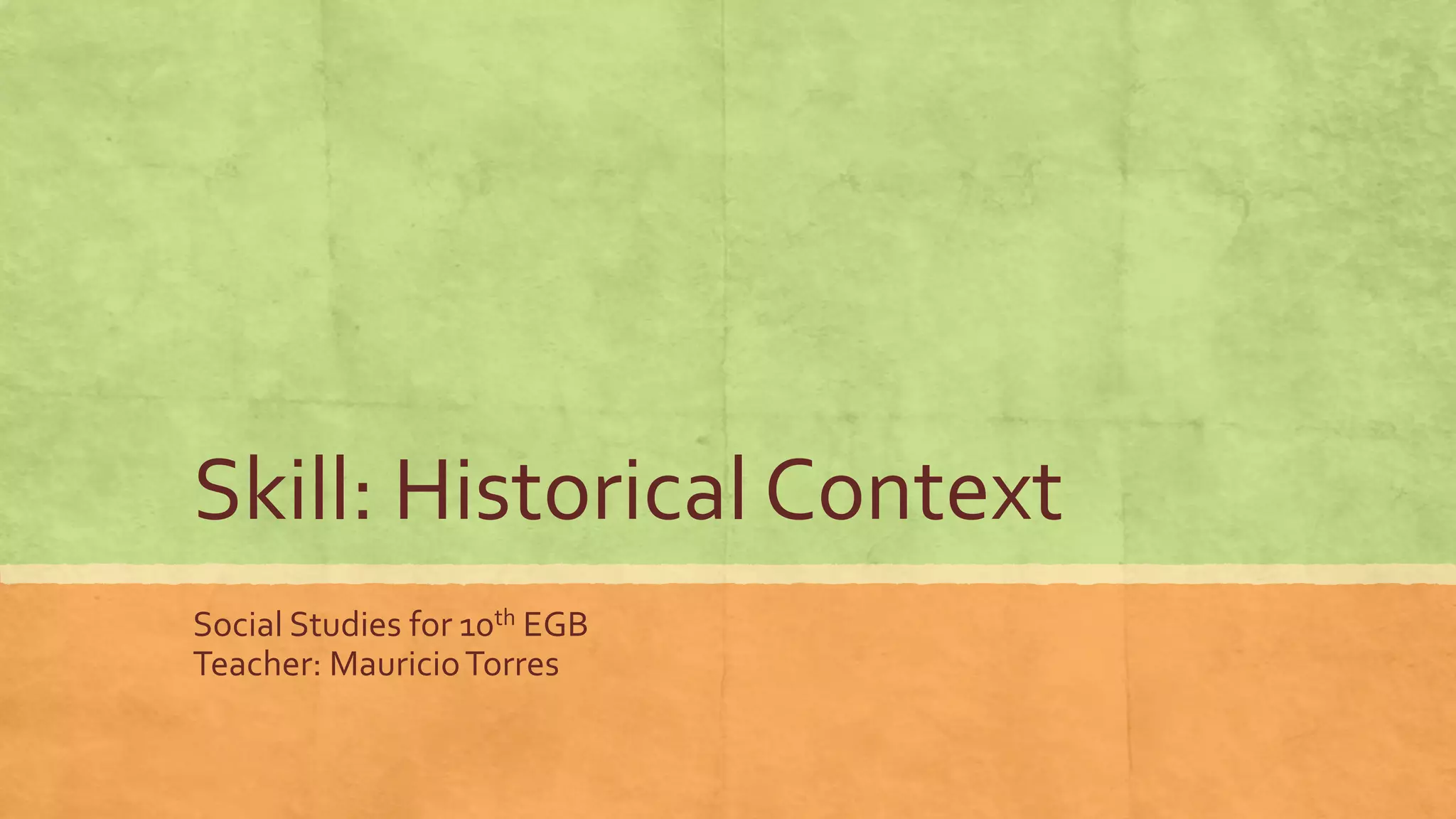 This document provides context about understanding historical events. It explains that historical context includes the values, beliefs, conditions, and practices of the past which may differ from today. To understand an event, one must consider it in its proper context rather than judging it based solely on modern values. As an example, it discusses a 12th century battle between Muslim and European armies from the perspective of Baha' ad-Din, an advisor to Saladin, who witnessed the battle. Additional context is given that the account was written to praise Saladin, which could affect the understanding of what actually happened. Students are prompted to think of how point of view and bias can influence the historical context portrayed in an account.