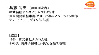 2 兵藤 岳史 (共同研究者) 株式会社バンダイナムコスタジオ 未来開発統括本部