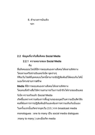 The document discusses the history and types of blogs and social media. It explains that blogs evolved from weblogs in the late 1990s and became popular in the early 2000s. The document outlines different types of social media like social networks, media sharing sites, forums, and microblogs. It also provides examples of popular blogging platforms and social networking websites.