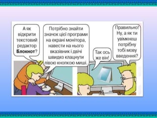 екрані комп’ютера значокЗнайди на екрані комп’ютера значок • Уважно натискай потрібні клавішіУважно натискай потрібні клавіші
