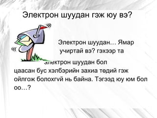 электрон шуудан. Яагаад вэ гэвэл, электрон