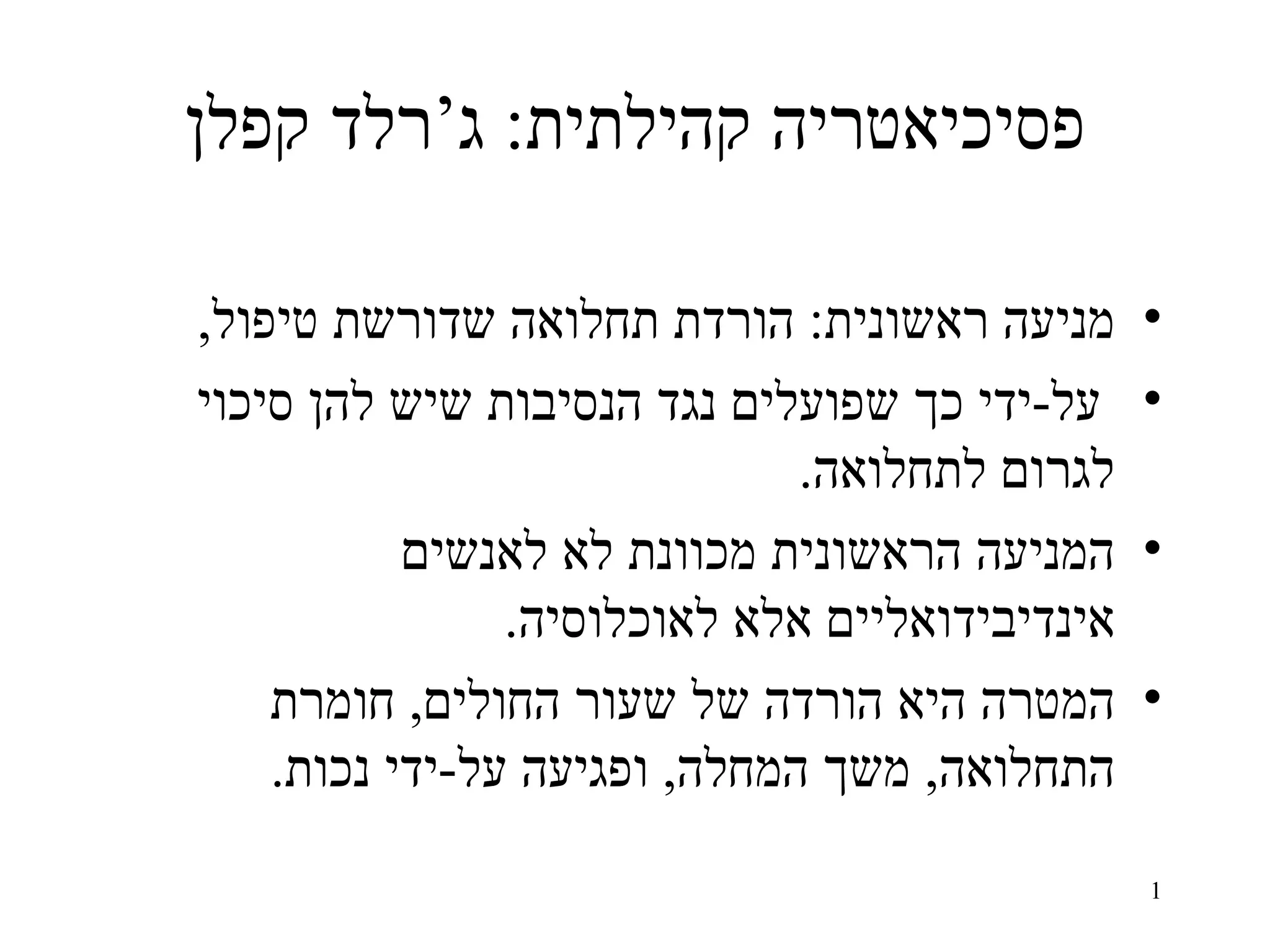 מטרה - החזרה מהירה של המצב התפקודי לקדמותו. •