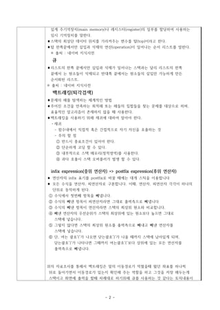 과제에 필요한 개념들은 스택, 큐, 백트래킹, infix expression, postfix expression이