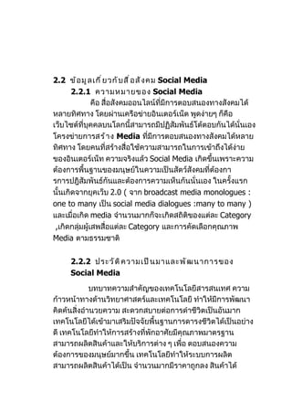 2.2 ข้อมูลเกี่ยวกับสื่อสังคม Social Media