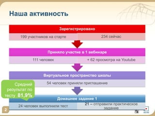 Документ содержит отчет о проведении вебинаров и центра оценки (ЦО) с подробным анализом результатов, включая количество участников и успехи в тестировании. Основное внимание уделяется разработке моделирующих упражнений для оценки компетенций, а также организации процесса ЦО для максимальной эффективности. В документе представлены требования к материалам, организации занятий и методам оценки, а также рекомендации по информированию участников.