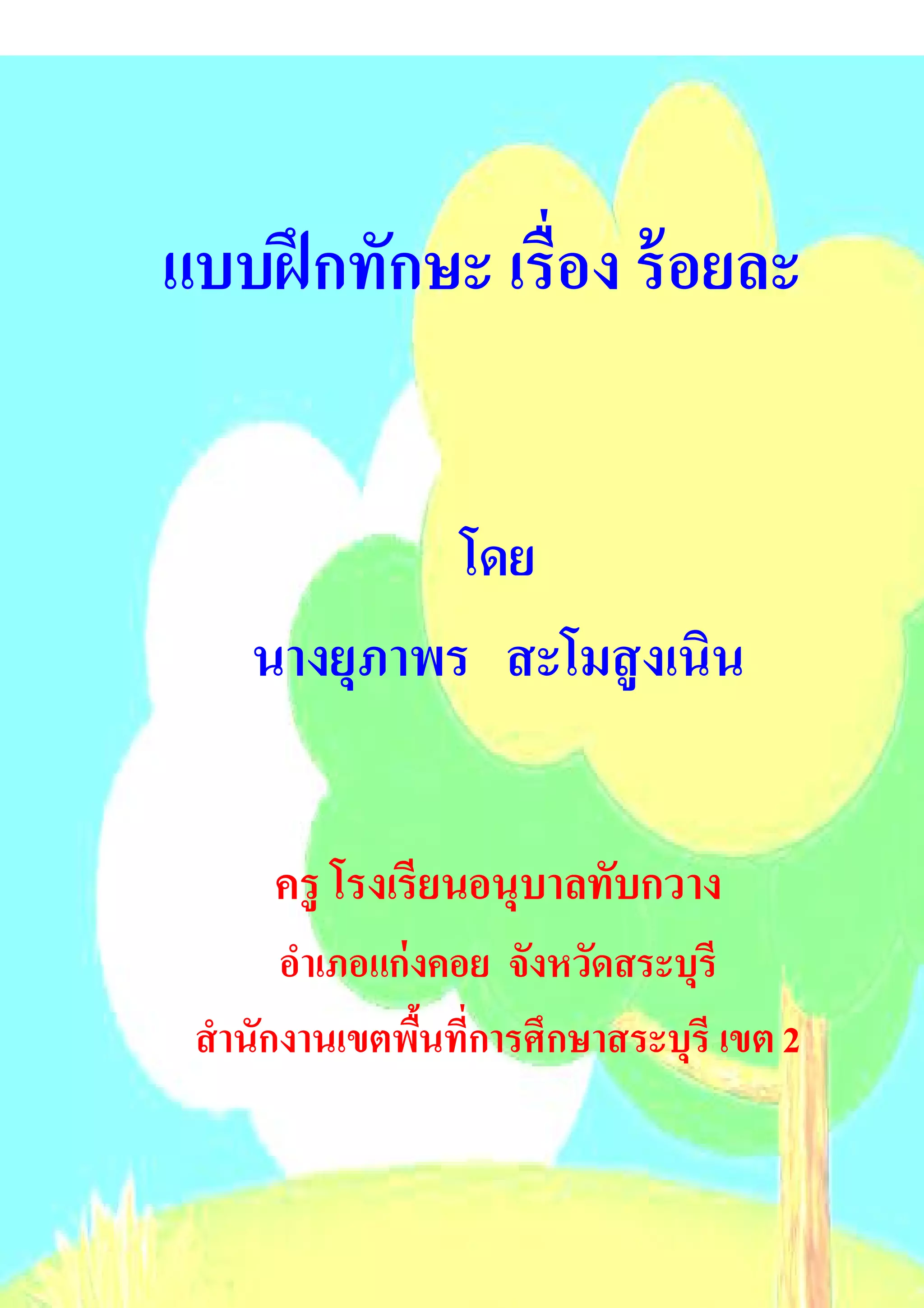 แบบฝึ กทัก ษะ เรื อง ร้ อ ยละ เป็ นการจัด การบวนการเรี ย นรู้ ที เน้น ให้นัก เรี ยนได้