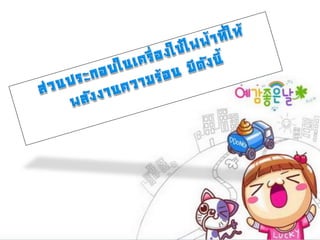 เรื่อง เครื่องใช้ไฟฟ้า รายวิชา วิทยาศาสตร์ จาทาโดย เด็กหญิง ฐิติกา ธรรมยา เลขที่ 21 เด็กหญิง ทิวารัตน์ วงศ์ปัญญา เลขที่ 22 เด็กหญิง ธนวรรณ เทพสืบ เลขที่ 23 เด็กหญิง ธัญลักษณ์ ยอดอ้อย เลขที่ 24 เด็กหญิง ธัญวรัตน์ สมศักดิ์ เลขที่ 25 ชั้นมัธยมศึกษาปีที่ 3/2 เสนอ ครู จิราภรณ์ ไชยมงคล
